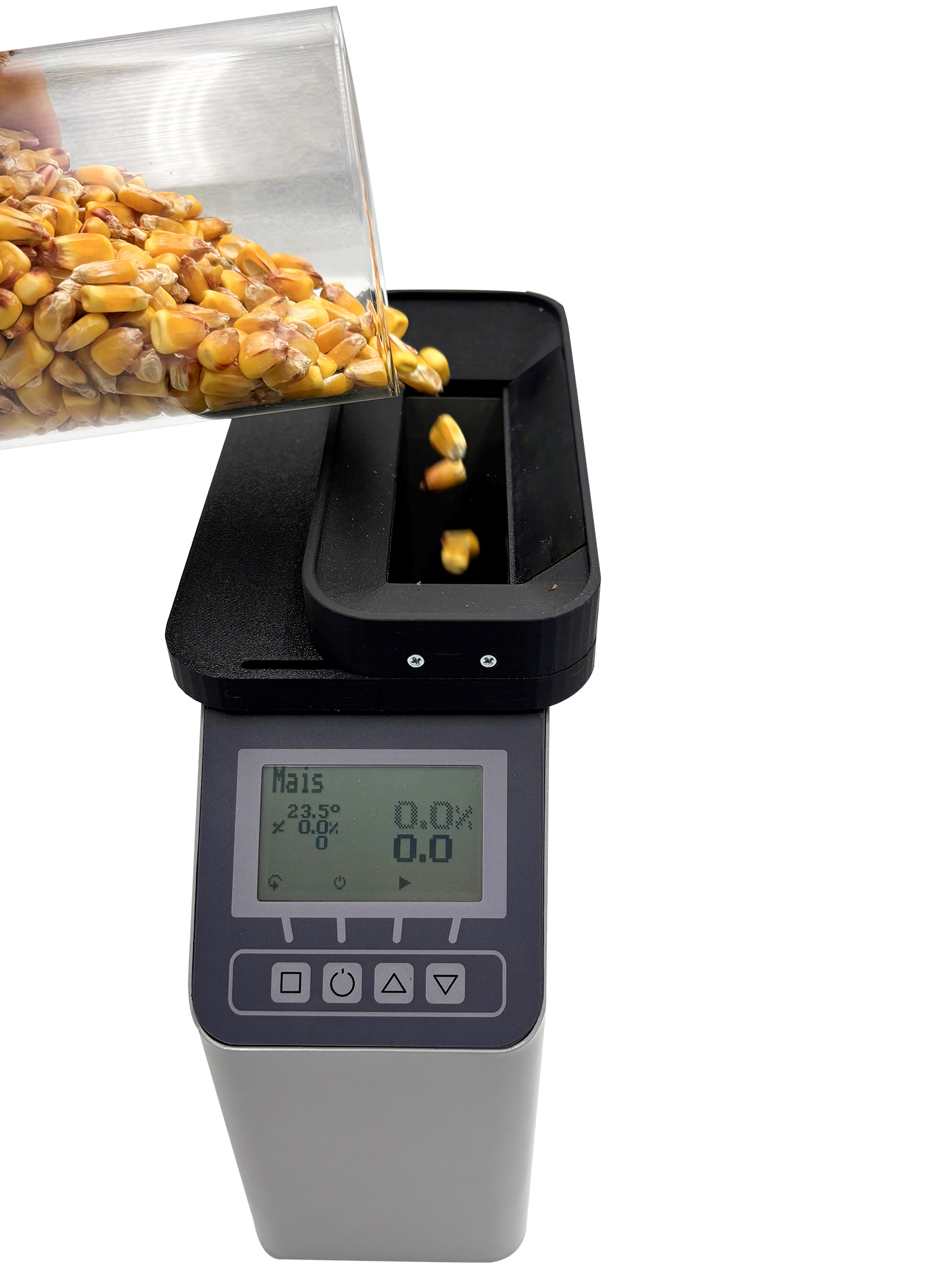 Aby zwiększyć dokładność i powtarzalność pomiaru wilgotności pełnego ziarna, pomiar odbywa się z kompensacją hektolitrową. Pomiary wilgotności są generowane z kompensacją temperatury, a aktualizacja oprogramowania sprzętowego i krzywych charakterystycznych jest bardzo prosta dzięki zintegrowanemu interfejsowi USB.